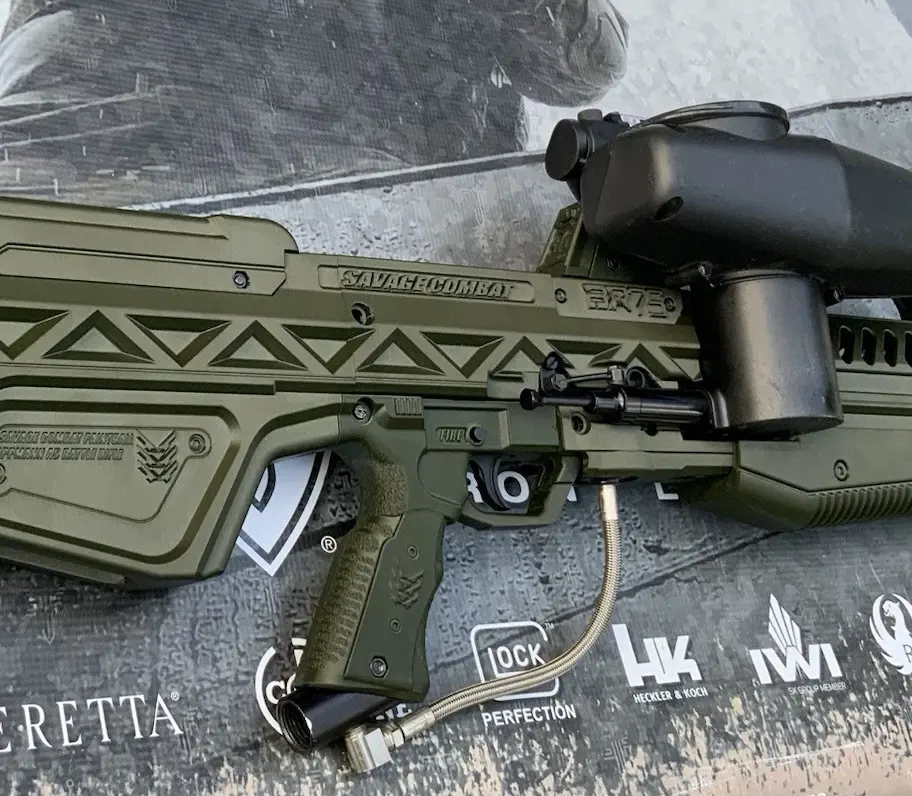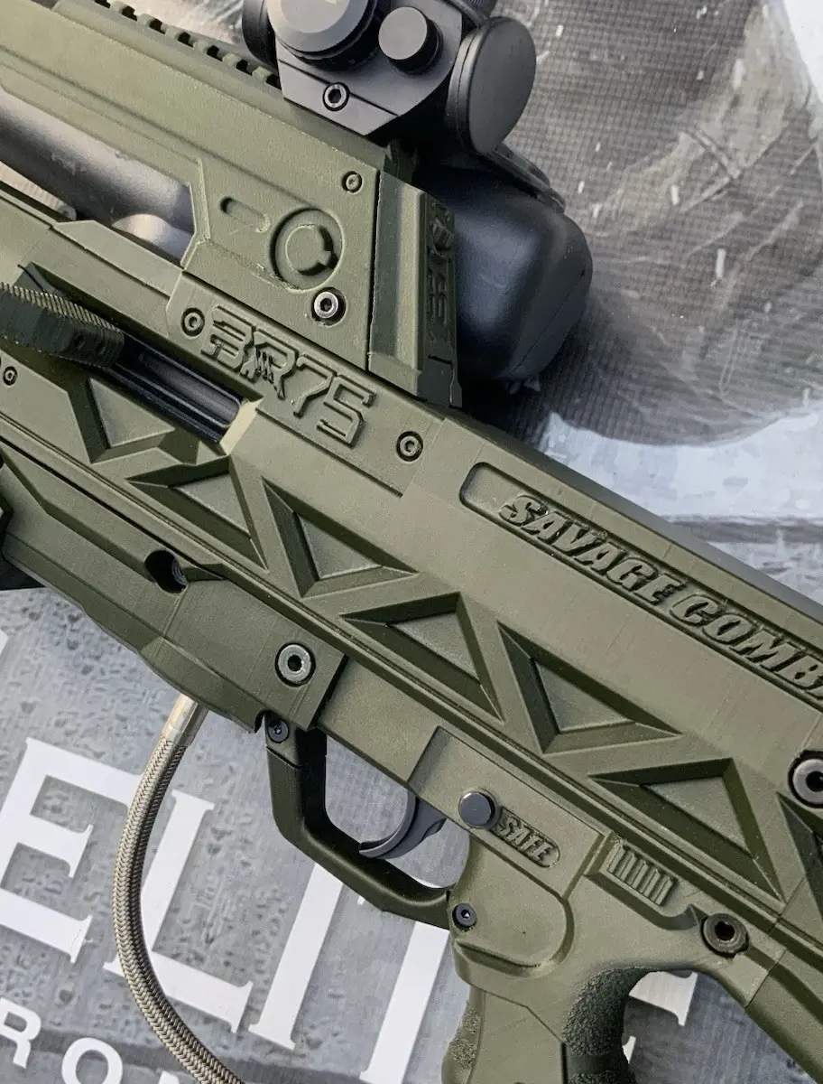 Savage Combat BR75 Battle Rifle houses a rebuilt 1st Gen Tippmann A5 .68 caliber Paintball marker.